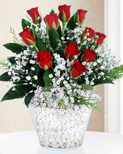 Sevgi Bahçesi Vazoda 11 Kırmızı Gül